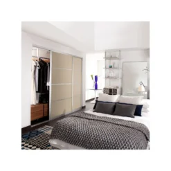 Ellipse Sliding Wardrobe Door 4 Panel Arctic White Glass With Aluminium Frame (W)610mm