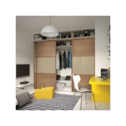 Linear Sliding Wardrobe Door 3 Panel Windsor Oak And Cream Glass With Oak Frame (W)610mm