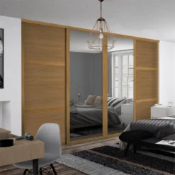 Shaker 4 Door Sliding Wardrobe Kit Oak Panel / Mirror With Oak Frame (W)2898 X (H)2260mm