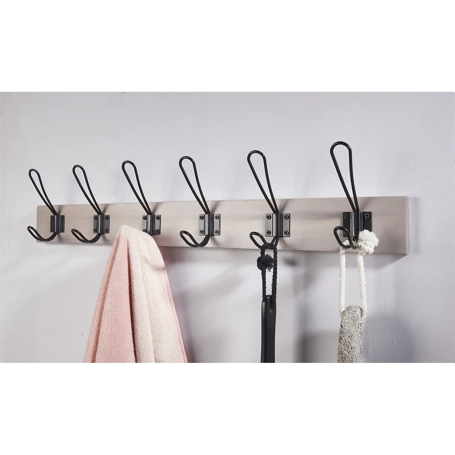Grey ash wood effect coat rail featuring 6 wire style black double hooks. A modern design to fit a contemporary look.