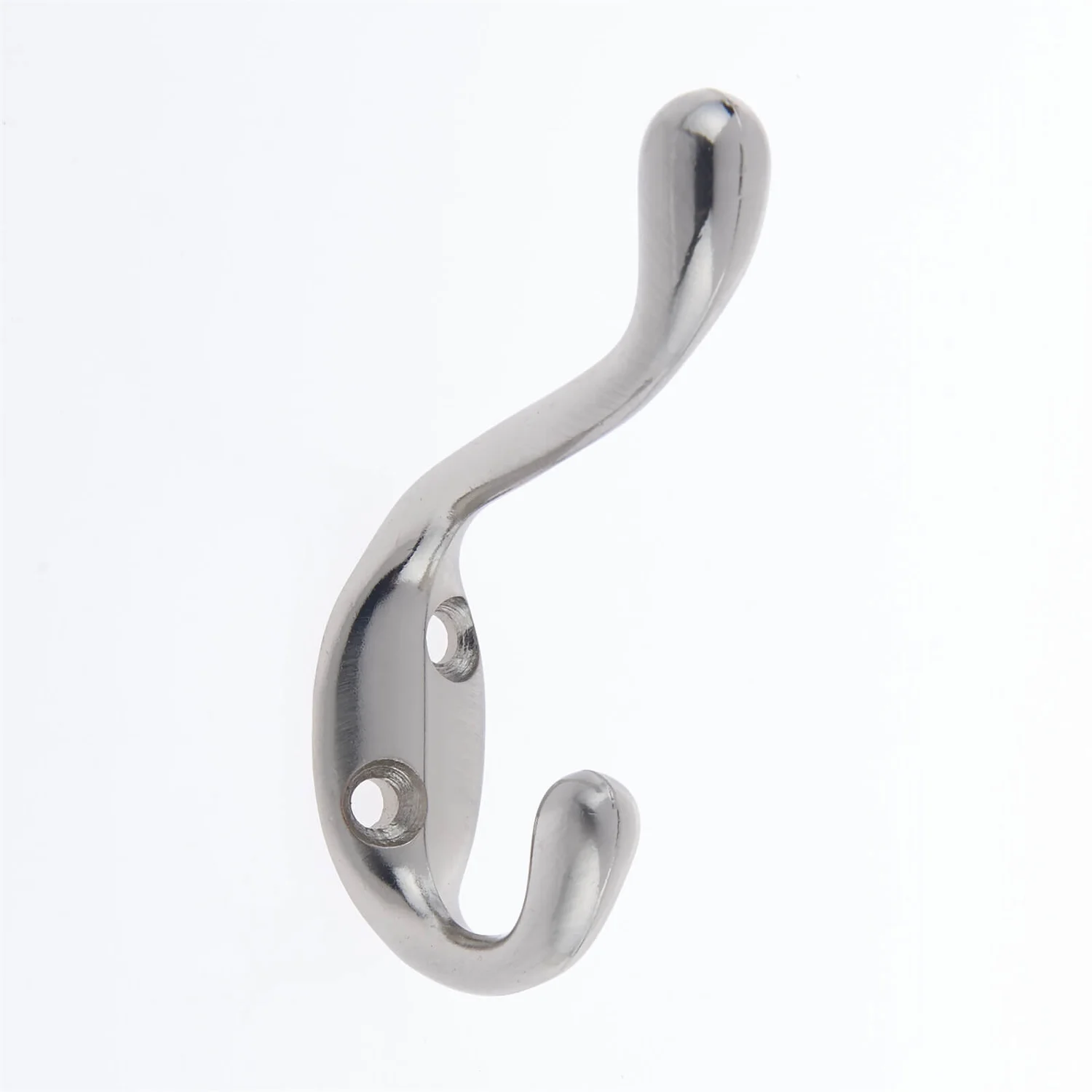 Classic design double coat hook with a durable satin nickel finish.