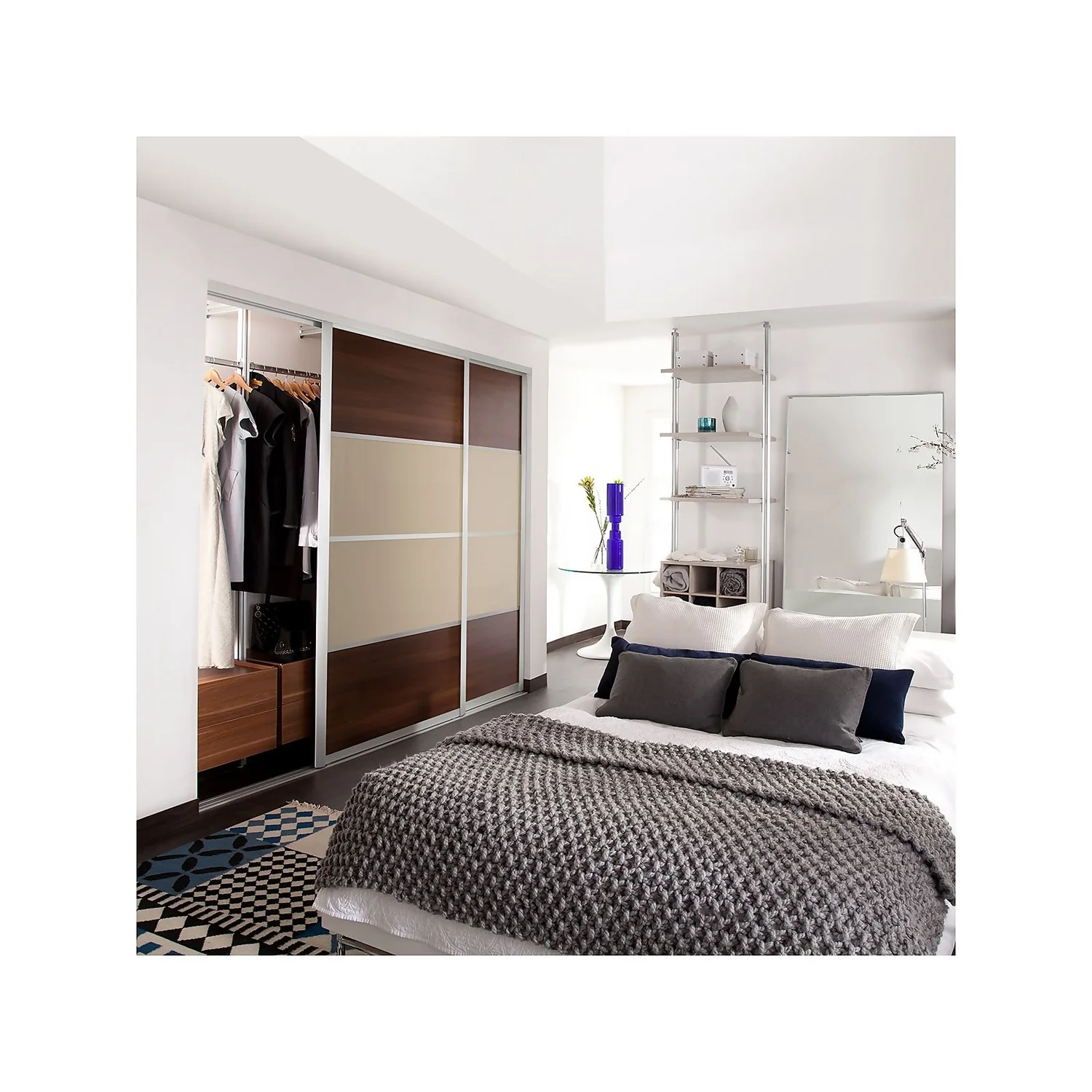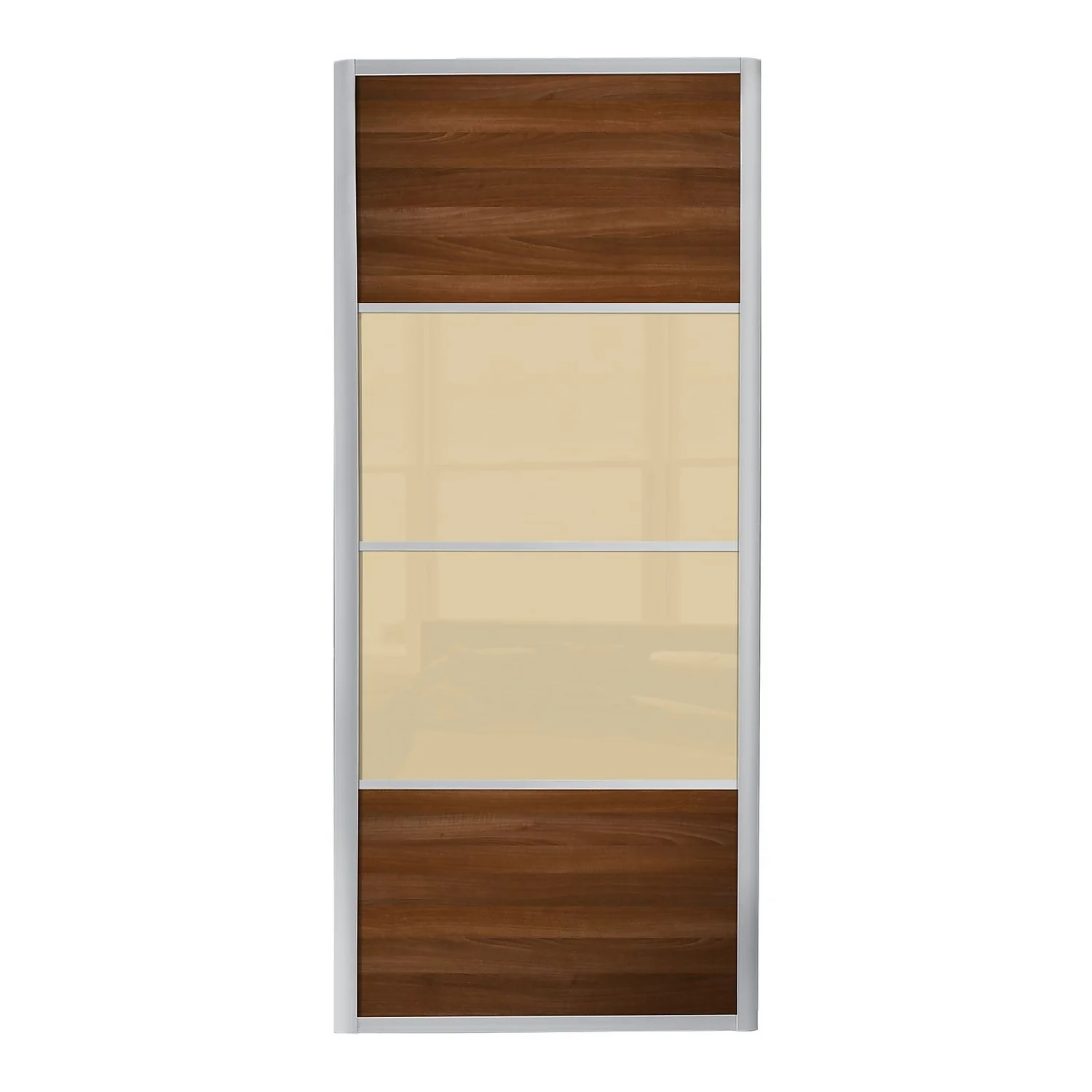 Ellipse Sliding Wardrobe Door 4 Panel Walnut / Cream Glass With Aluminium Frame (W)914mm