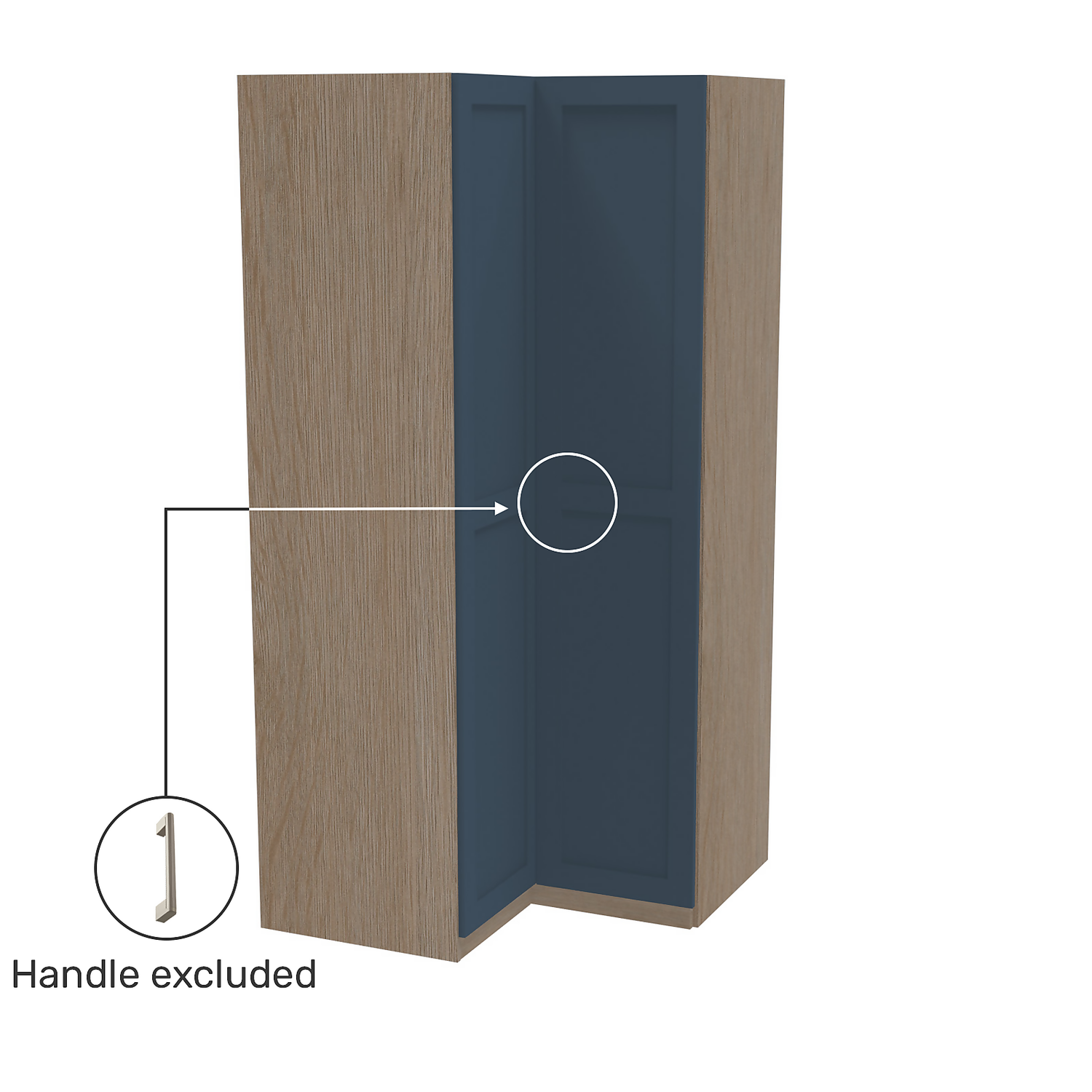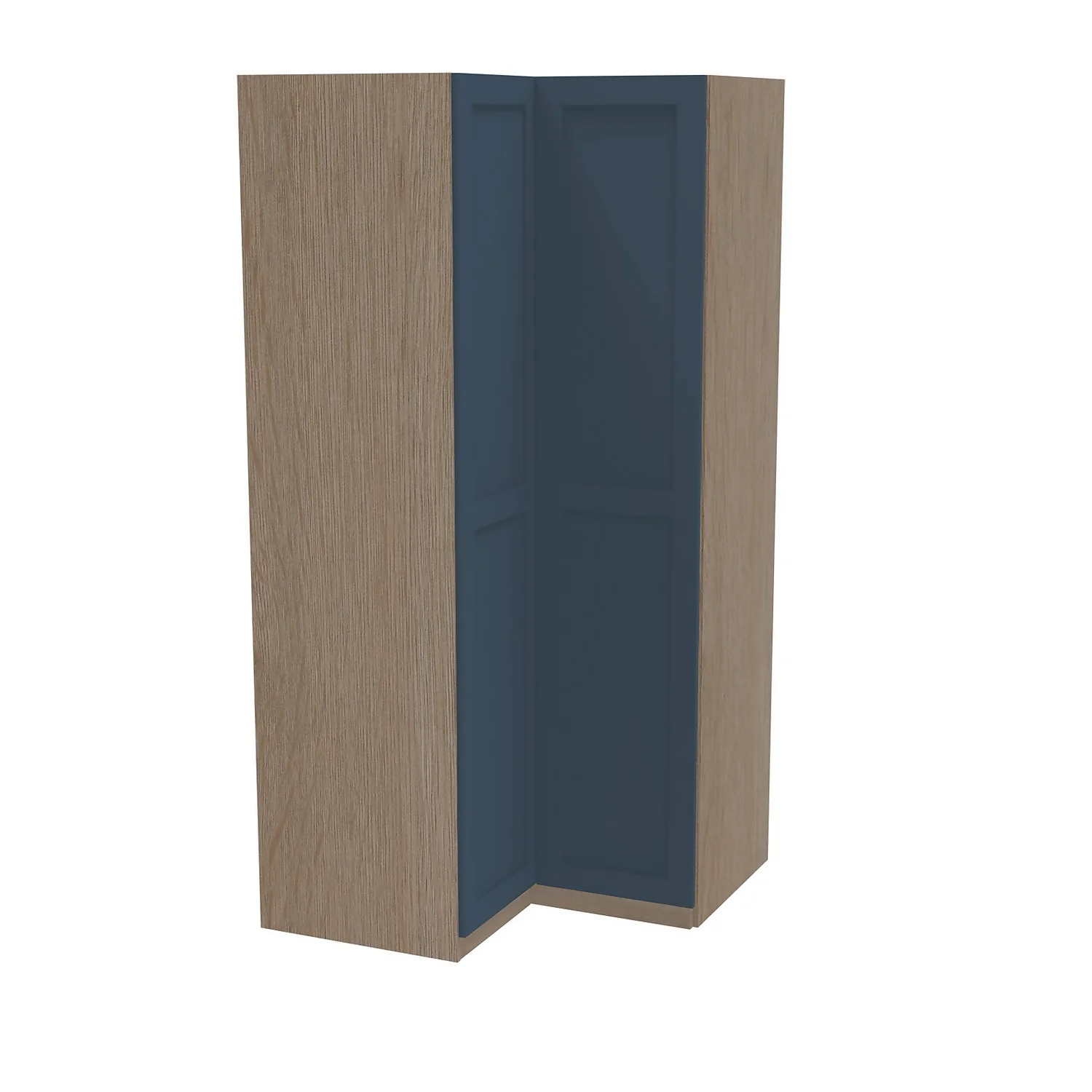 The House Beautiful range is exclusive to Homebase and offers a selection of different finishes and storage configurations to suit your needs. With a range of carcass colours and contrasting door designs, you can select the look to fit your bedroom aesthetic. This corner wardrobe (1 x double unit and corner conversion) features an oak effect carcass and beautiful shaker doors finished in a luxurious matt navy blue. The wardrobe features premium soft close clip-on Blum hinges, five shelves and a hanging rail. You can customise your wardrobe with our additional internal storage options (available separately) including internal drawers, shelves, dividing shelves and extra hanging rails. Choose your handles from our range of both traditional and modern to suit your desired look.
