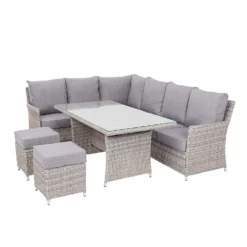 Keter California 5 Seater Double Sofa Outdoor Garden Furniture Lounge Set – Graphite With Grey Cushions