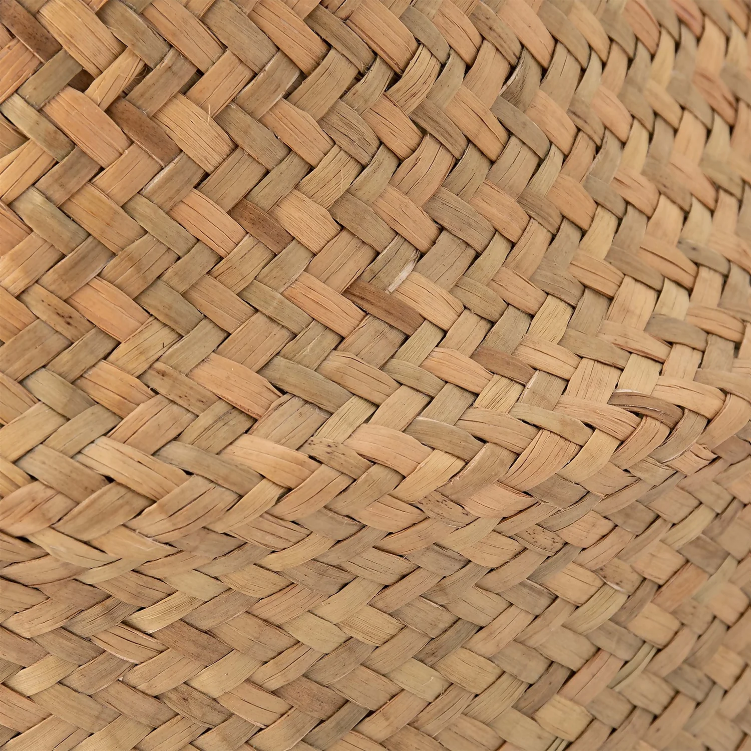Made from a natural seagrass material with a cotton thread smiley face, this basket is perfect for storing toys, clothing, blankets, towels and more. The convenient handles make carrying easy and the basket can be collapsed down into a bowl shape for easy storage when not in use.