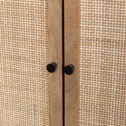 With its charming aesthetic, Kubu is a bohemian beauty. Retro woven cane panels meet hardwearing textured effect oak, making this range a visual treat. Our Kubu large sideboard is the perfect storage all-rounder. Books, board games and blankets can all be hidden away behind the 2 cupboards and 3 drawers. It’s raised from the ground on solid tapered legs. Decorate the top with a choice plant or some family photos. The laidback appeal of the boho look is great for the lounge or dining room, creating relaxing vibes that are perfect for your chill-out area.