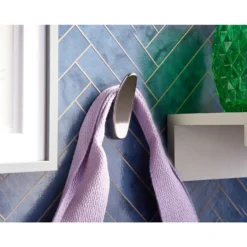 Add some minimalist style with this art deco single hook with a fashionable satin nickel finish. Back fixed so no visible screws when fitted.