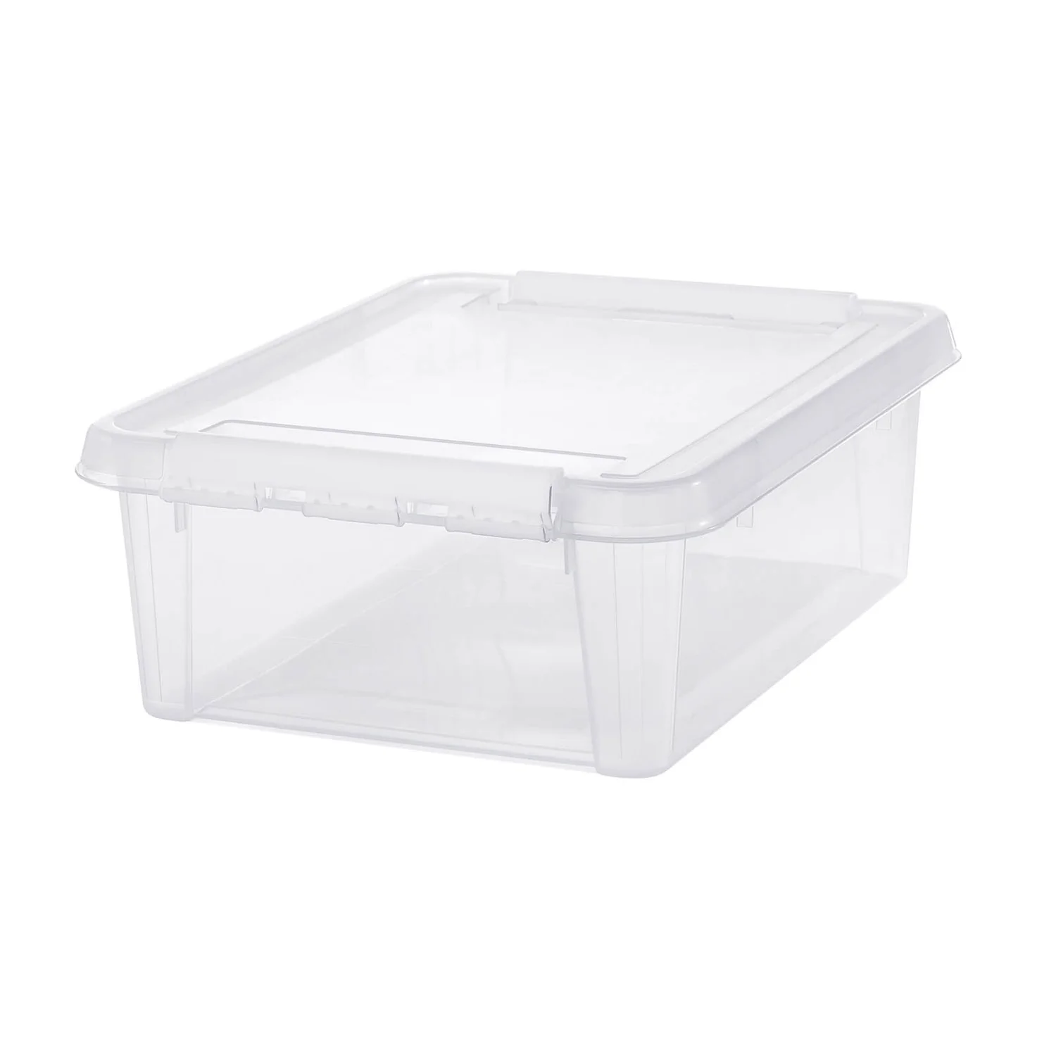 Practical storage box, clips keep the lid securely in place. Low storage box for hallway, entrance or laundry room.