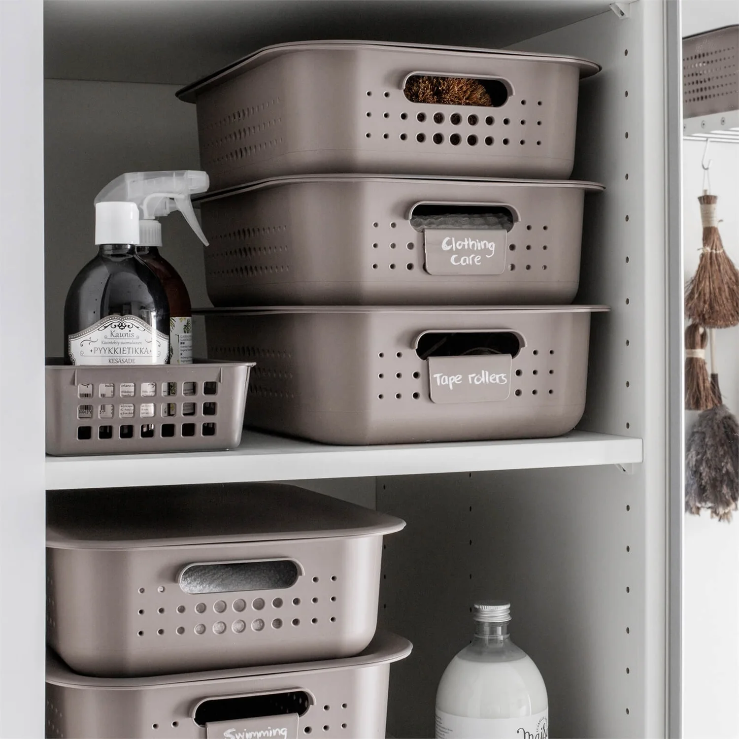 - Allows baskets to stack
