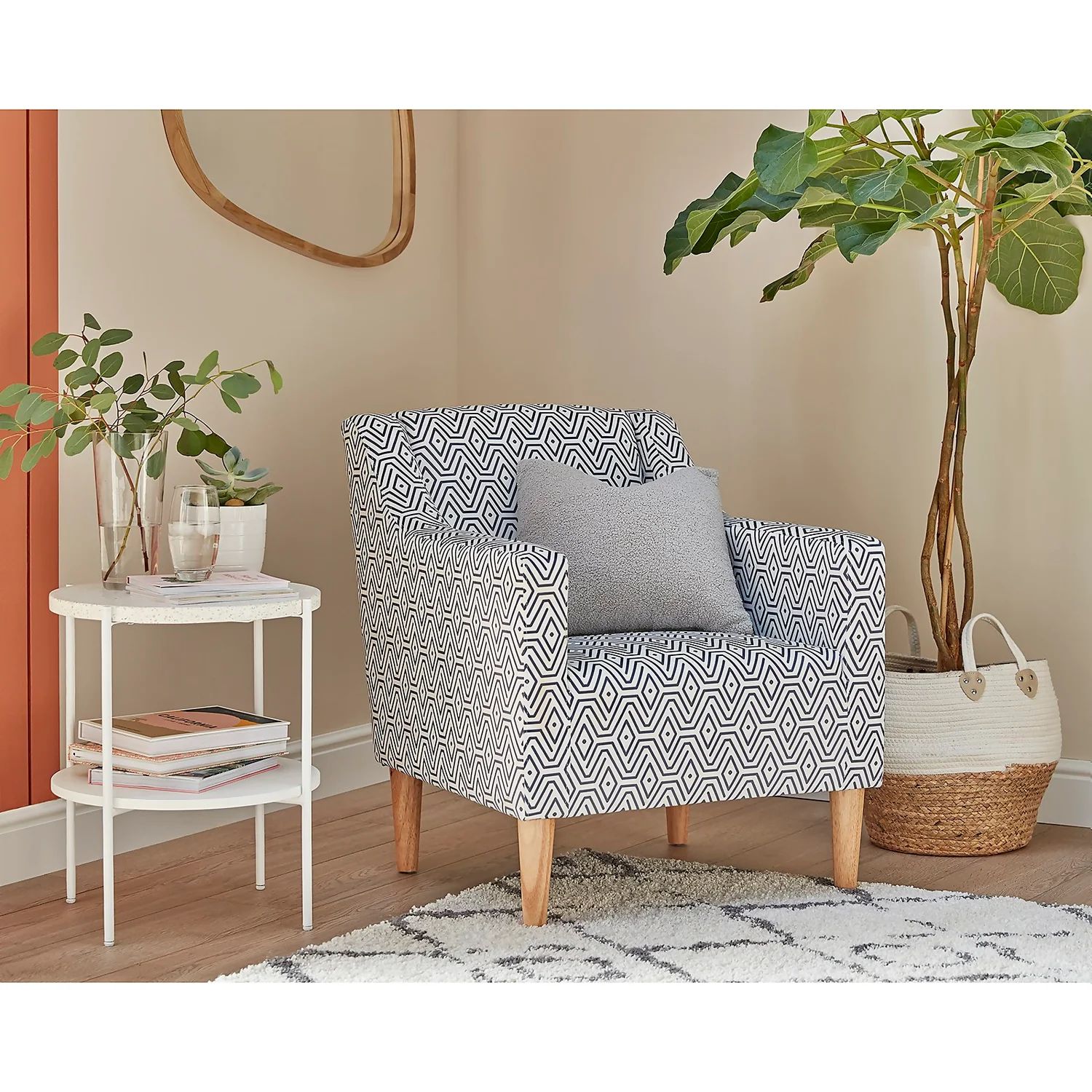 This fashionable Solna side table will brighten any space in your home. Featuring an authentic hand-laid white Terrazzo top on a sturdy white powder-coated metal frame with a white painted MDF shelf to match.
