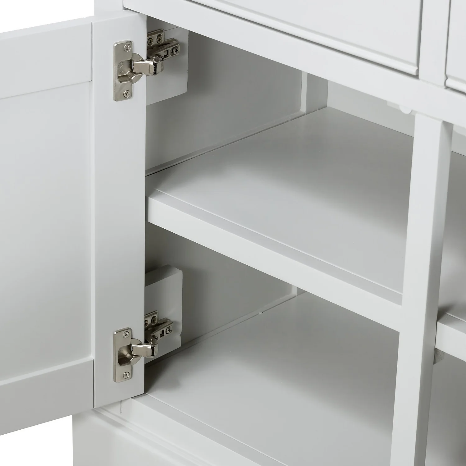 Traditional style at its best. The hand-painted Westcott exudes timeless country chic with its two-tone finish, panelled fronts and elegant stepped plinth. The fresh ivory tone gives this large sideboard a modern lift. With 3 cupboards and 3 drawers, the Westcott offers a generous amount of practical storage space. Fill it to the brim with your crockery and cutlery in the dining room or blankets and books in the lounge. The top surface makes a great display space for potted plants and photos of loved ones. It makes a great stand-alone piece or team it with other items in the Westcott collection for a cohesive look.